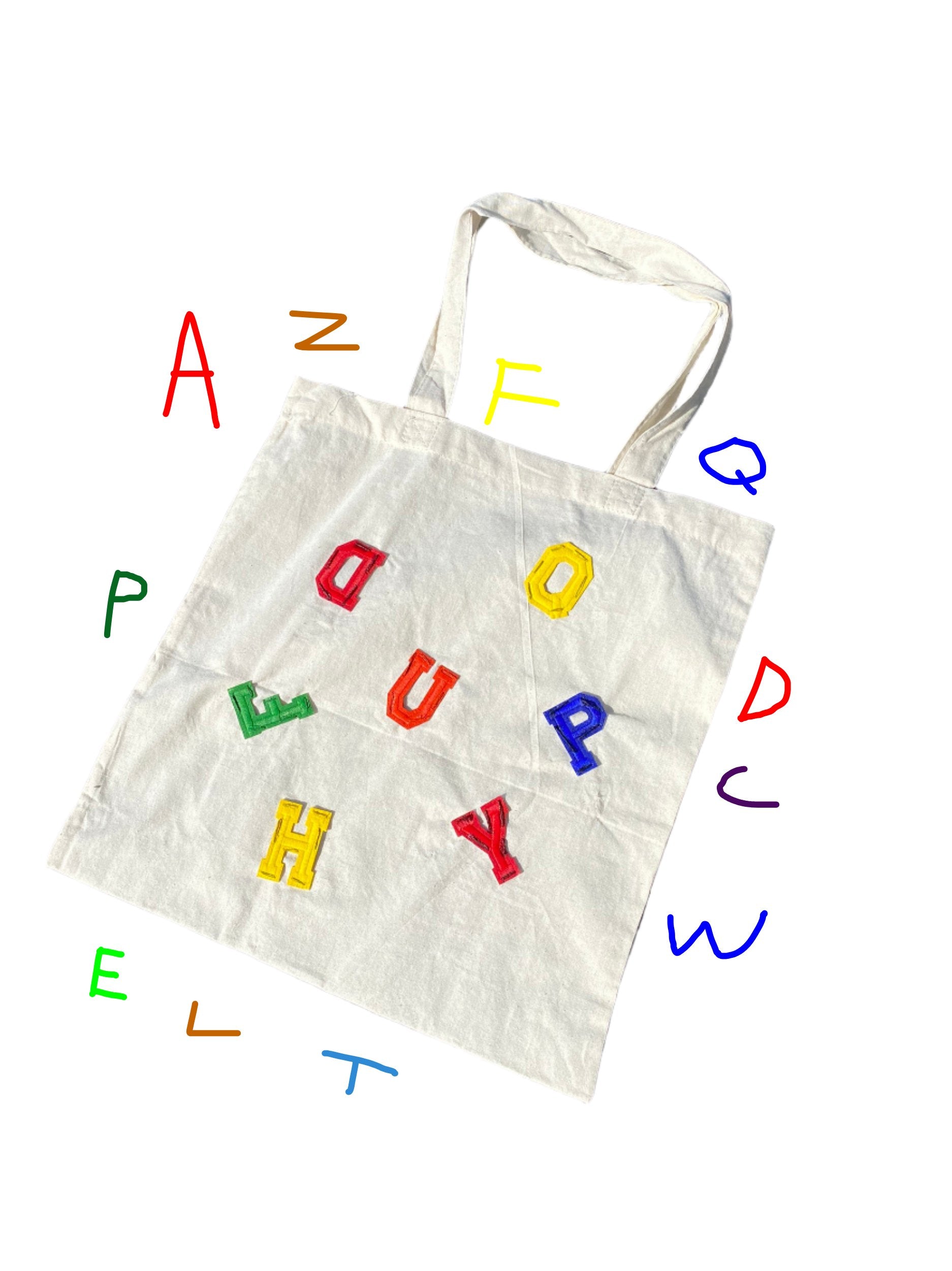 Designed by Mac using painted letters and sewing them jawns on a tote